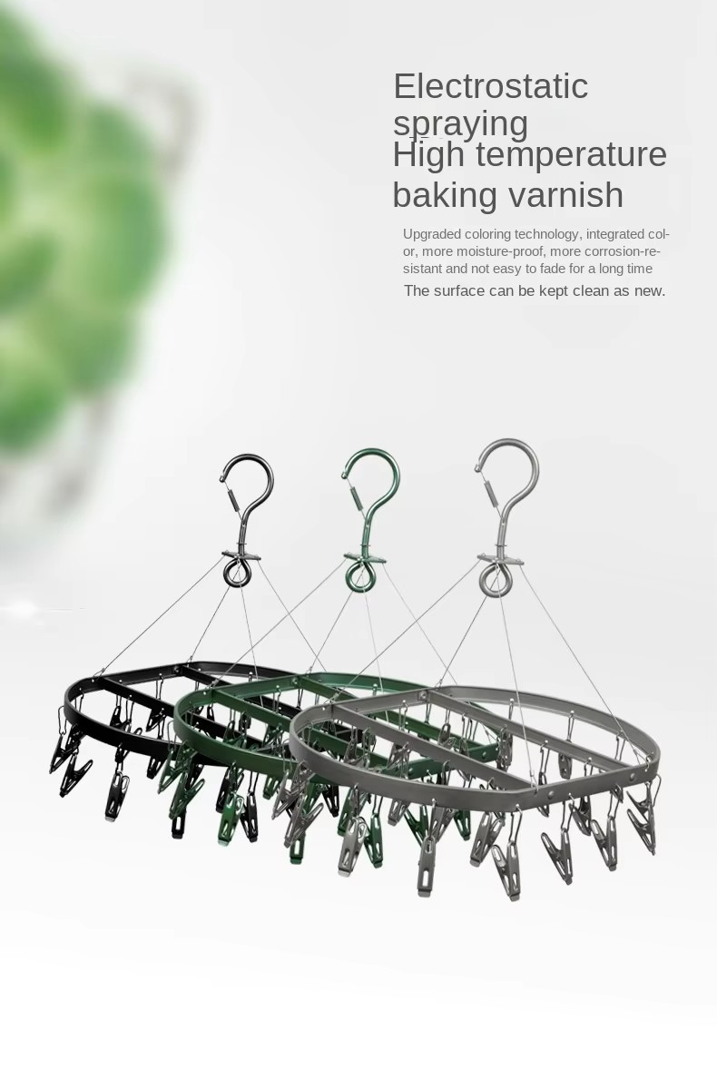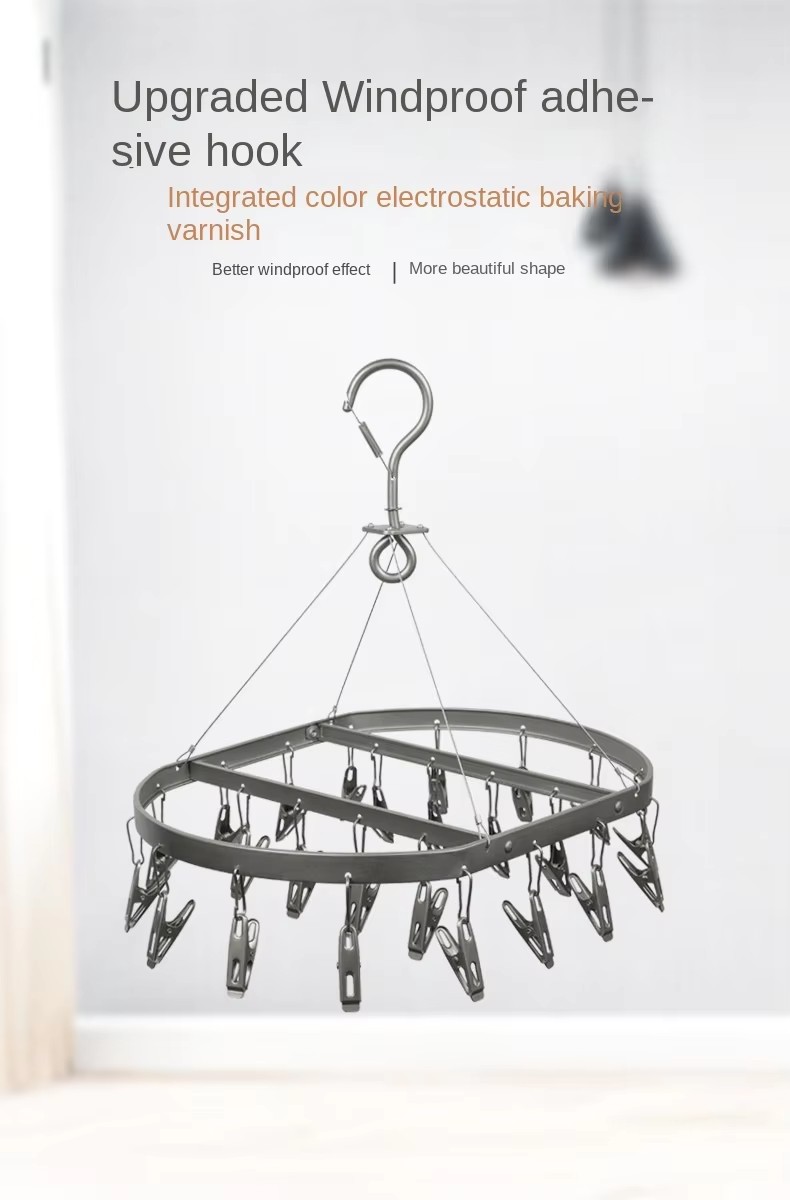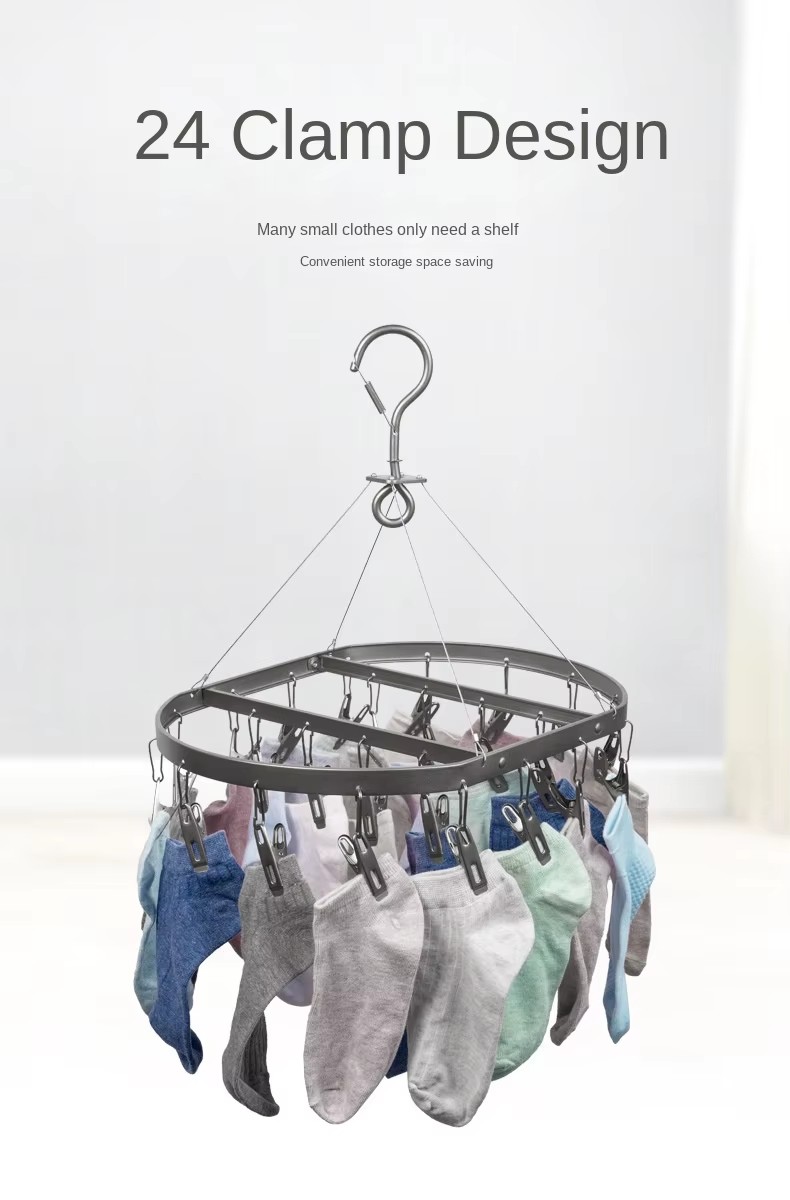 Customized 24-Clip Aluminum Alloy Stainless Steel Socks Rack Multi-Functional Windproof Single Cool Drying Clothing Organizer