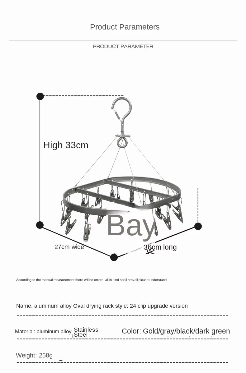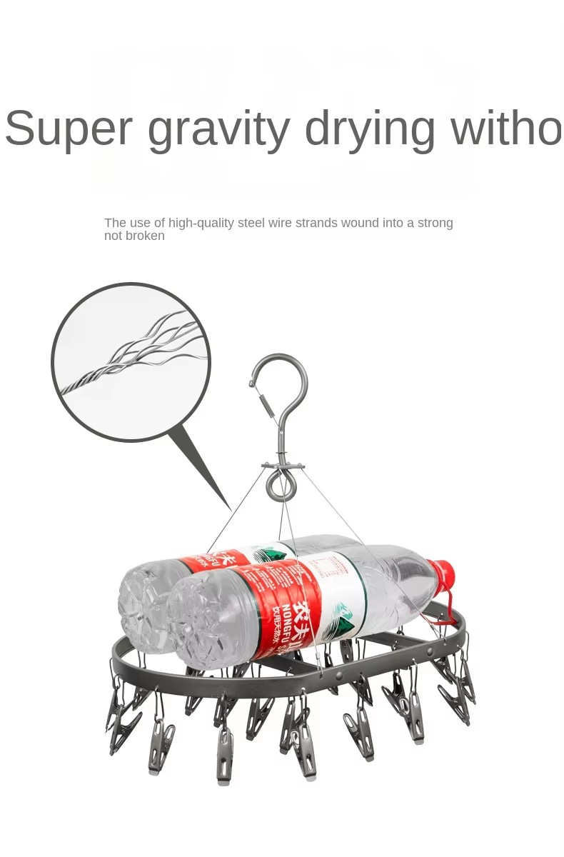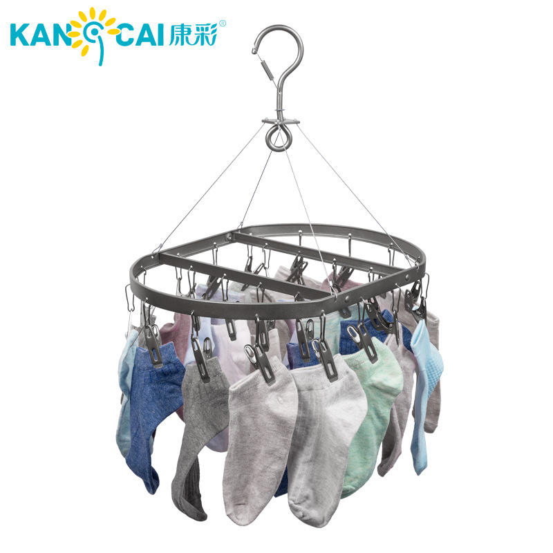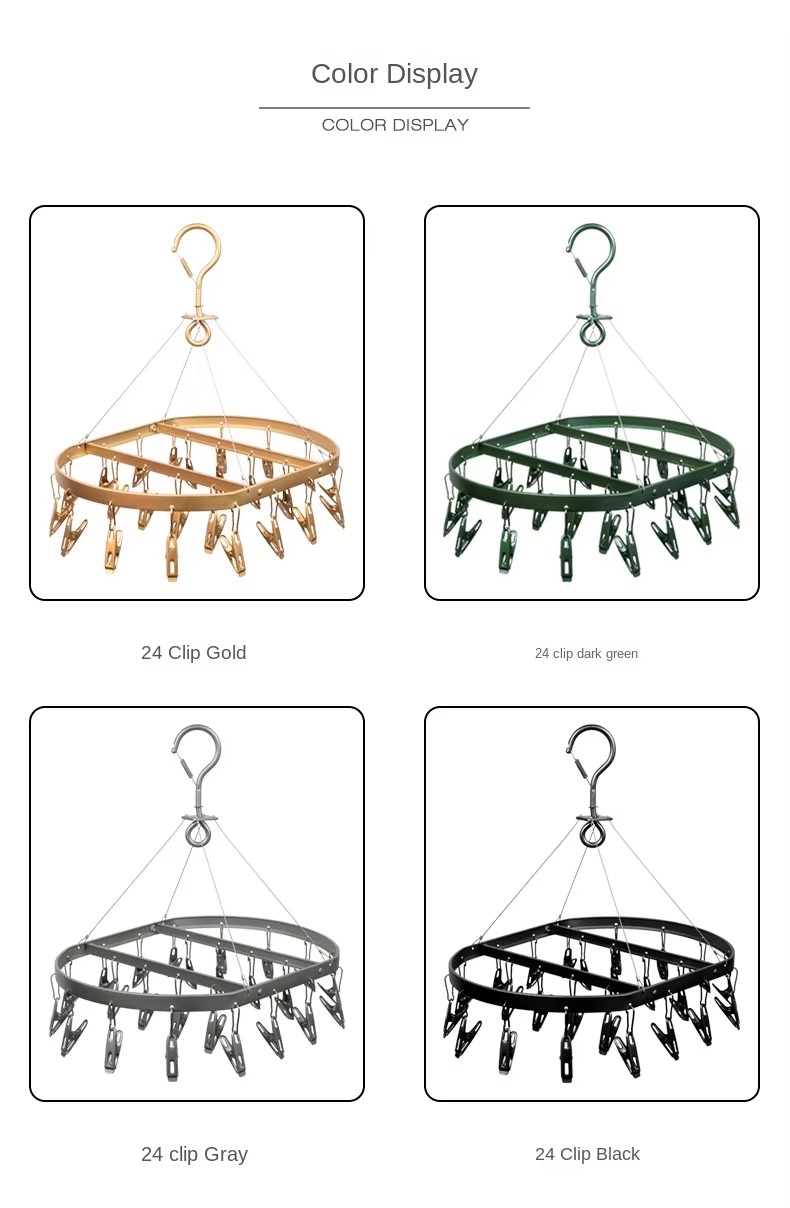 Customized 24-Clip Aluminum Alloy Stainless Steel Socks Rack Multi-Functional Windproof Single Cool Drying Clothing Organizer