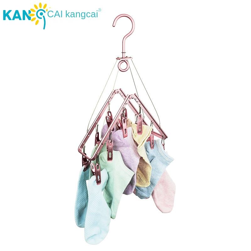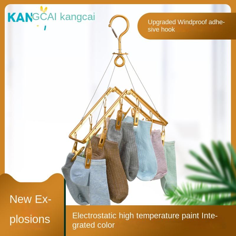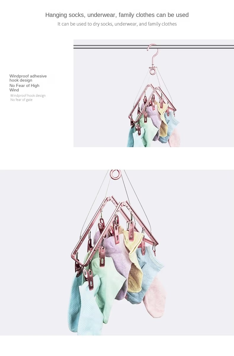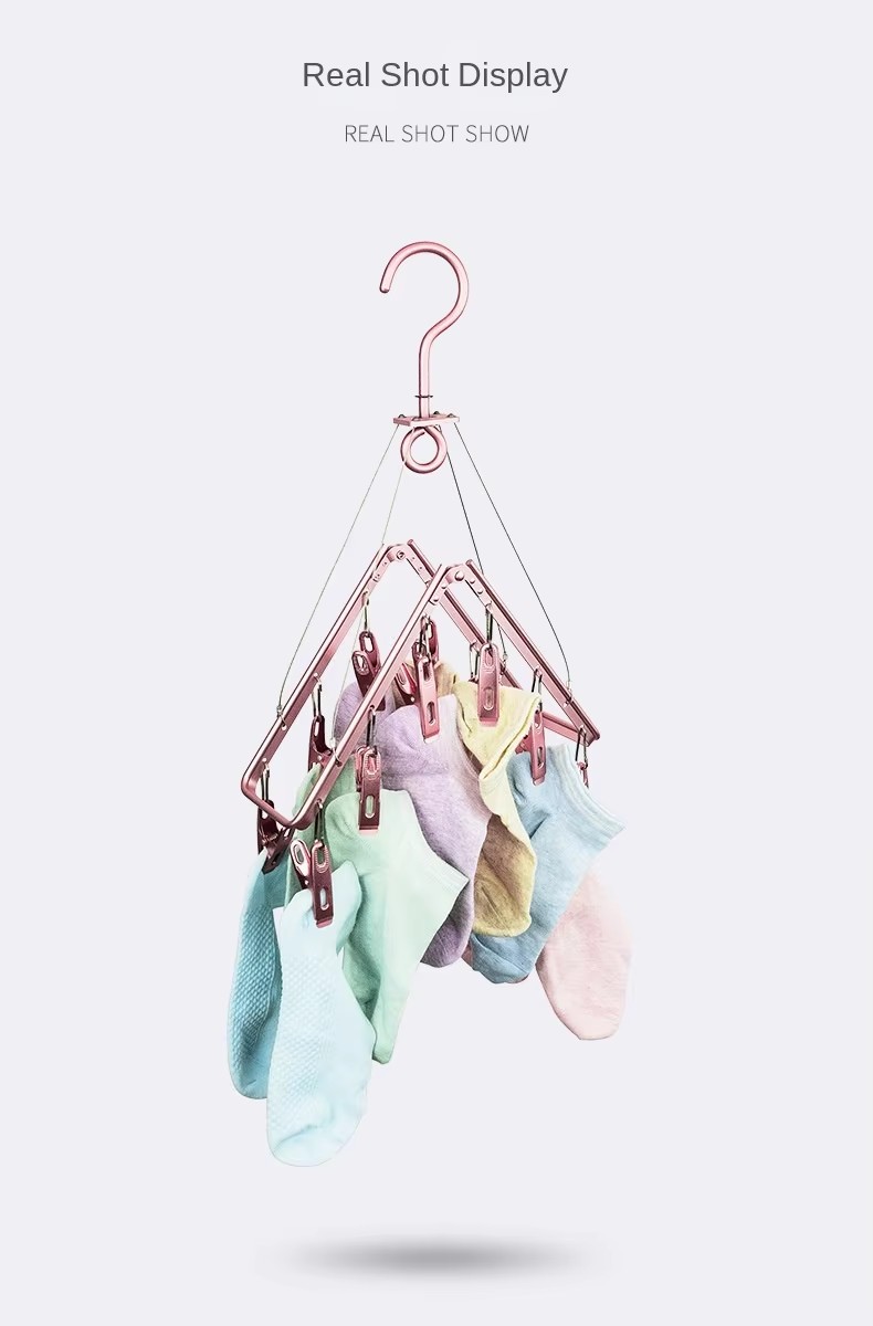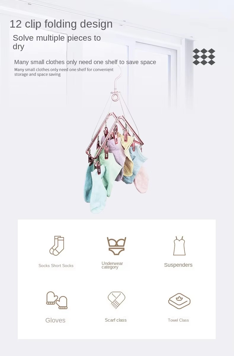 Portable Single Tier 12-Clip Aluminum Alloy Folding Socks Drying Rack Living Room Metal Underwear Clothing Dryer Organizer