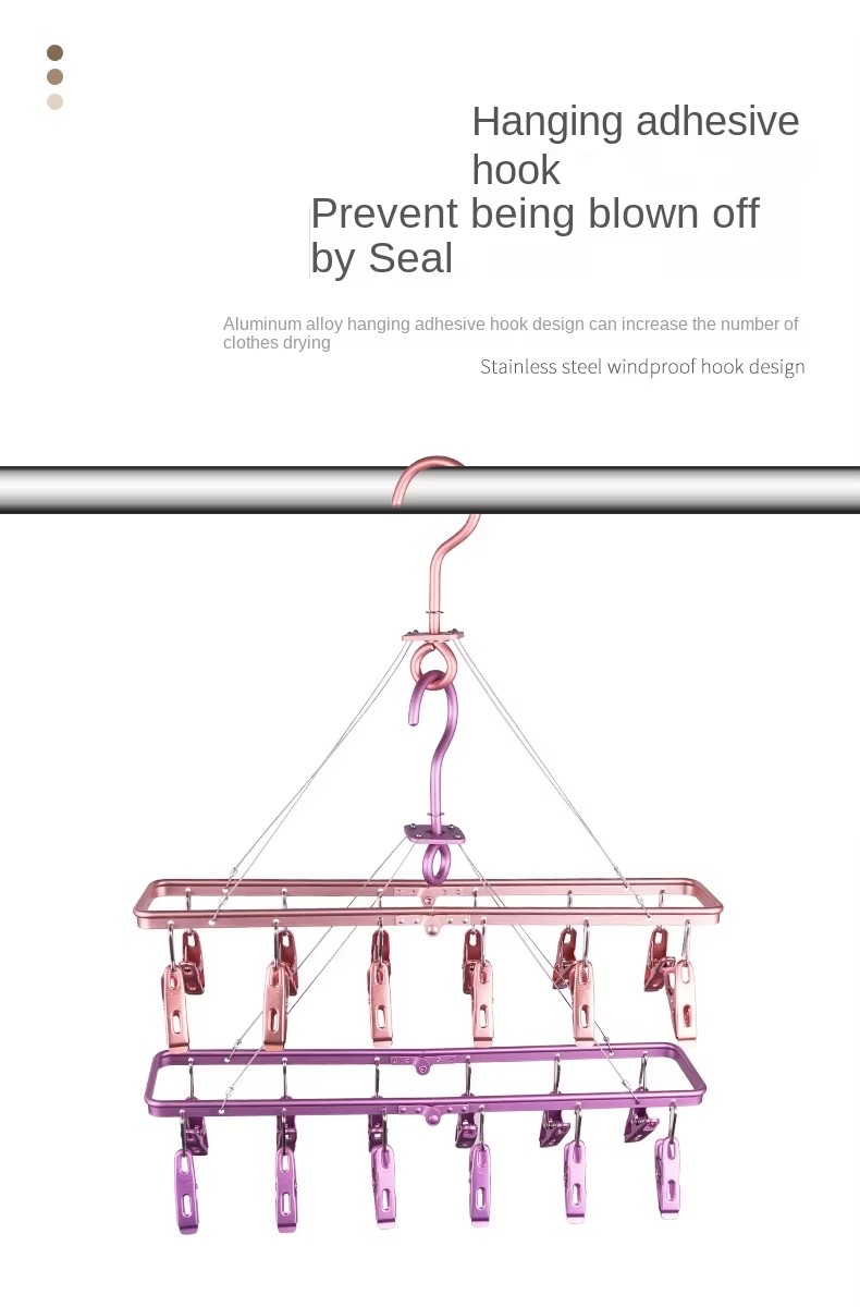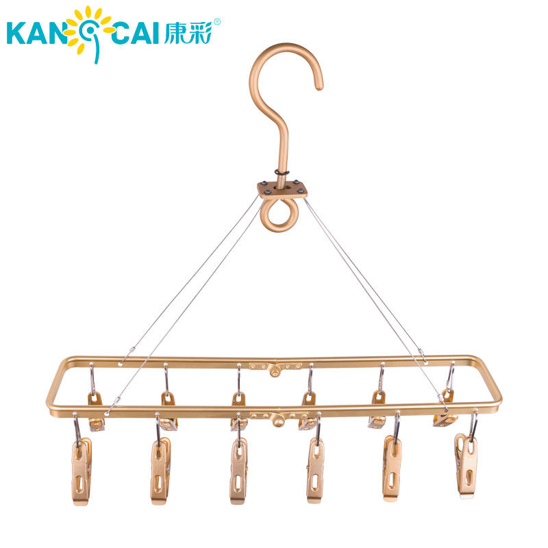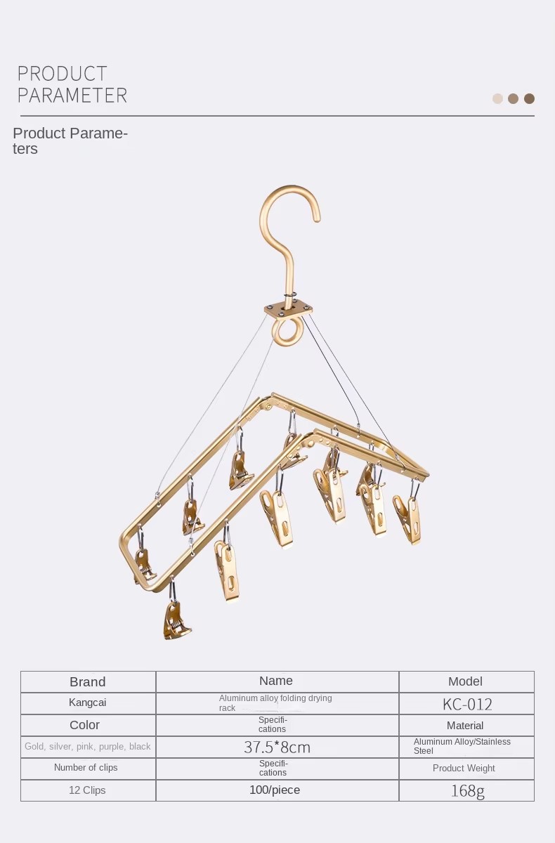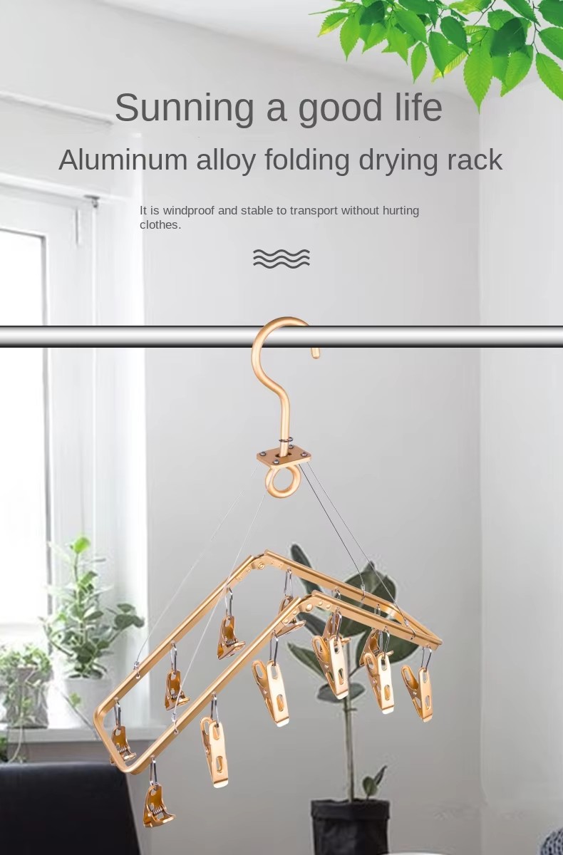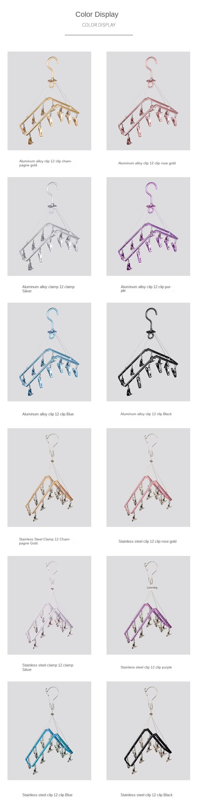 Portable Single Tier 12-Clip Aluminum Alloy Folding Socks Drying Rack Living Room Metal Underwear Clothing Dryer Organizer