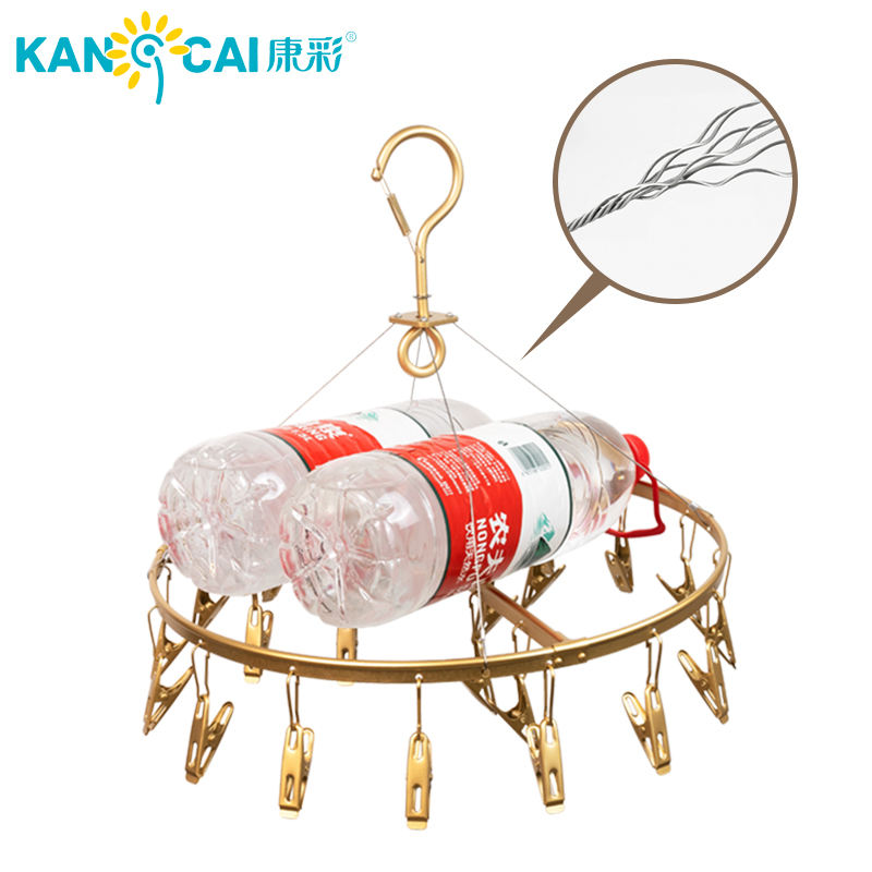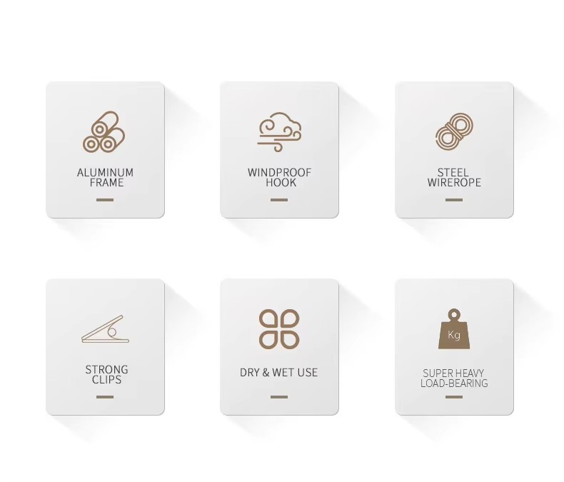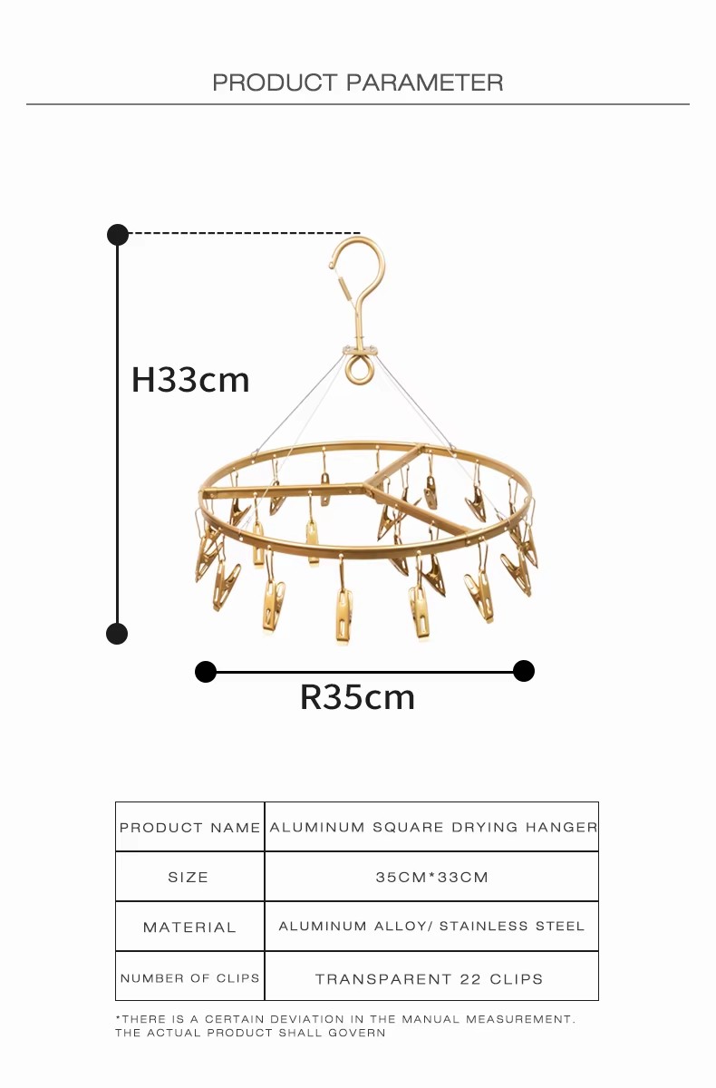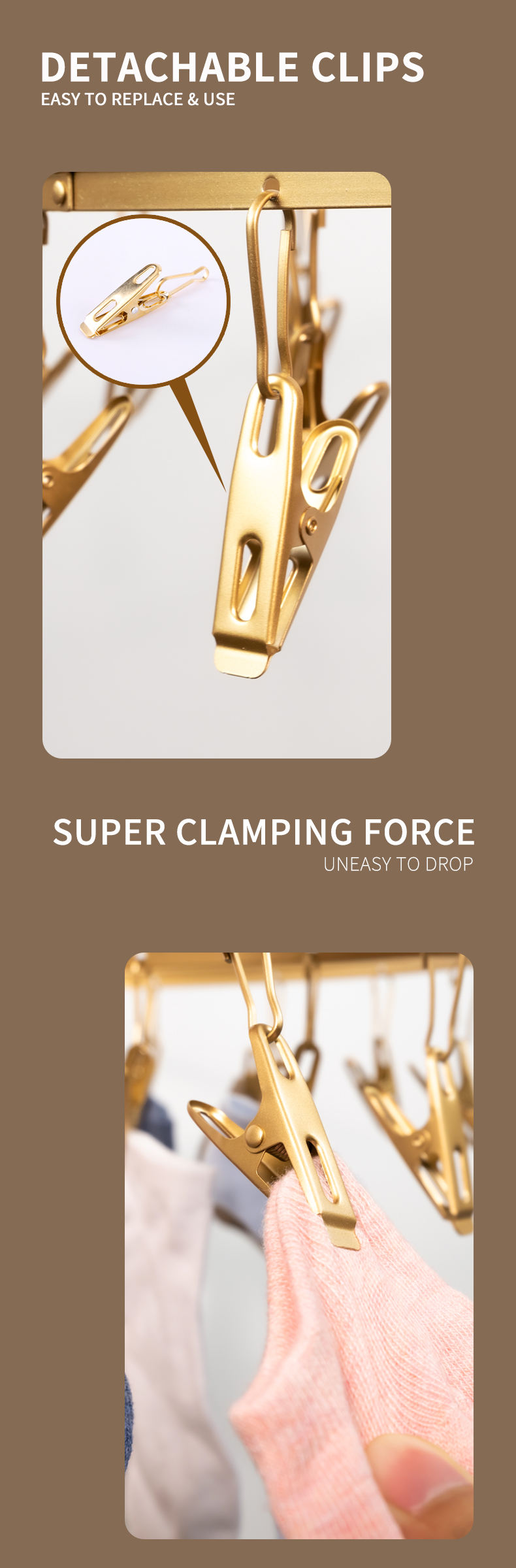 22 Peg Windproof Aluminum Laundry Rack with Stainless Steel Hangers for Kitchen and Bathroom Clothes Drying