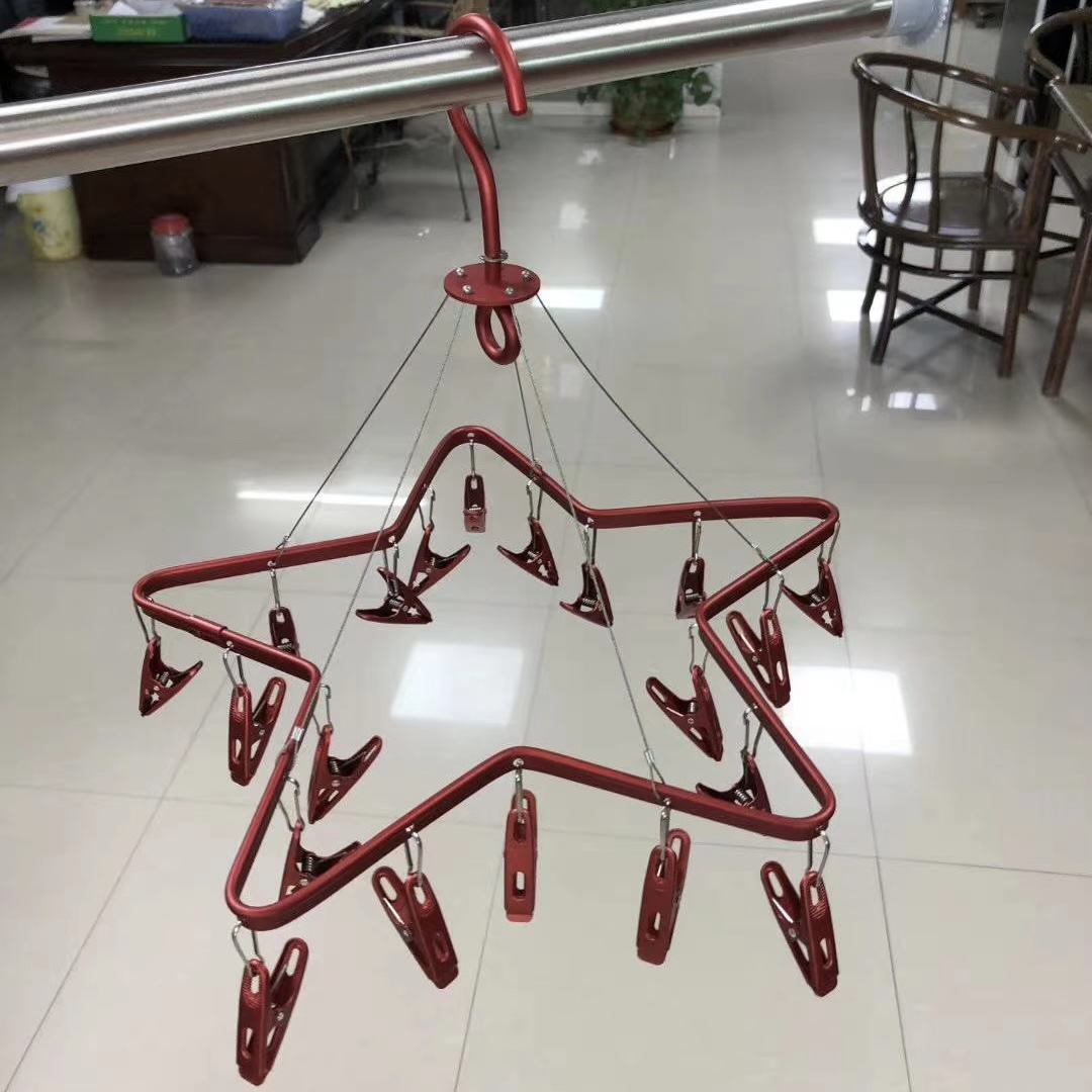 Factory Wholesale Customize Star Shaped Windproof Aluminium Hanger Metal Hanger Rustproof Airer with 20 Clips