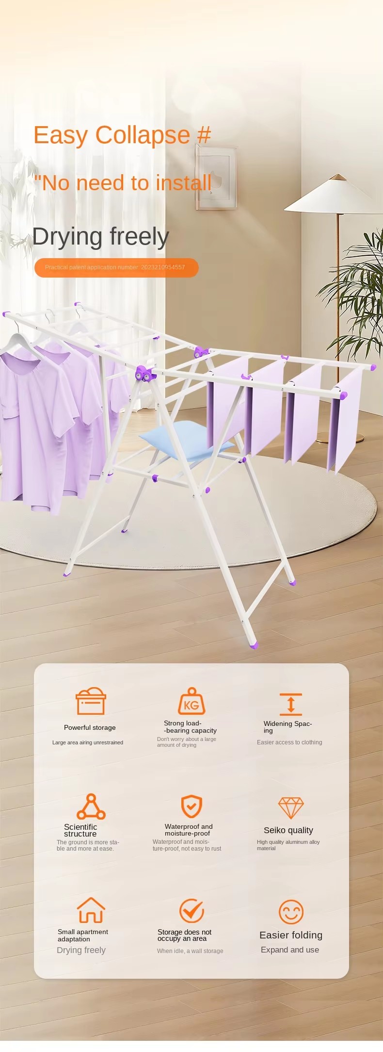 Wholesale Kangcai New Design Single Folding Modern White Gray Sustainable Aluminum Alloy Wing Hanger Indoor/Outdoor Drying Rack