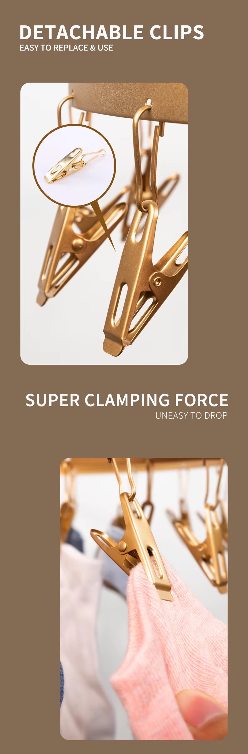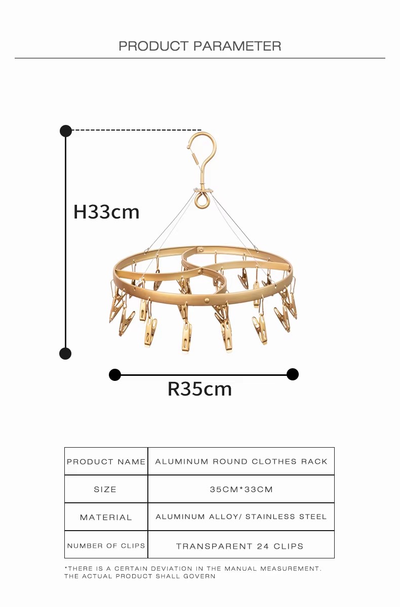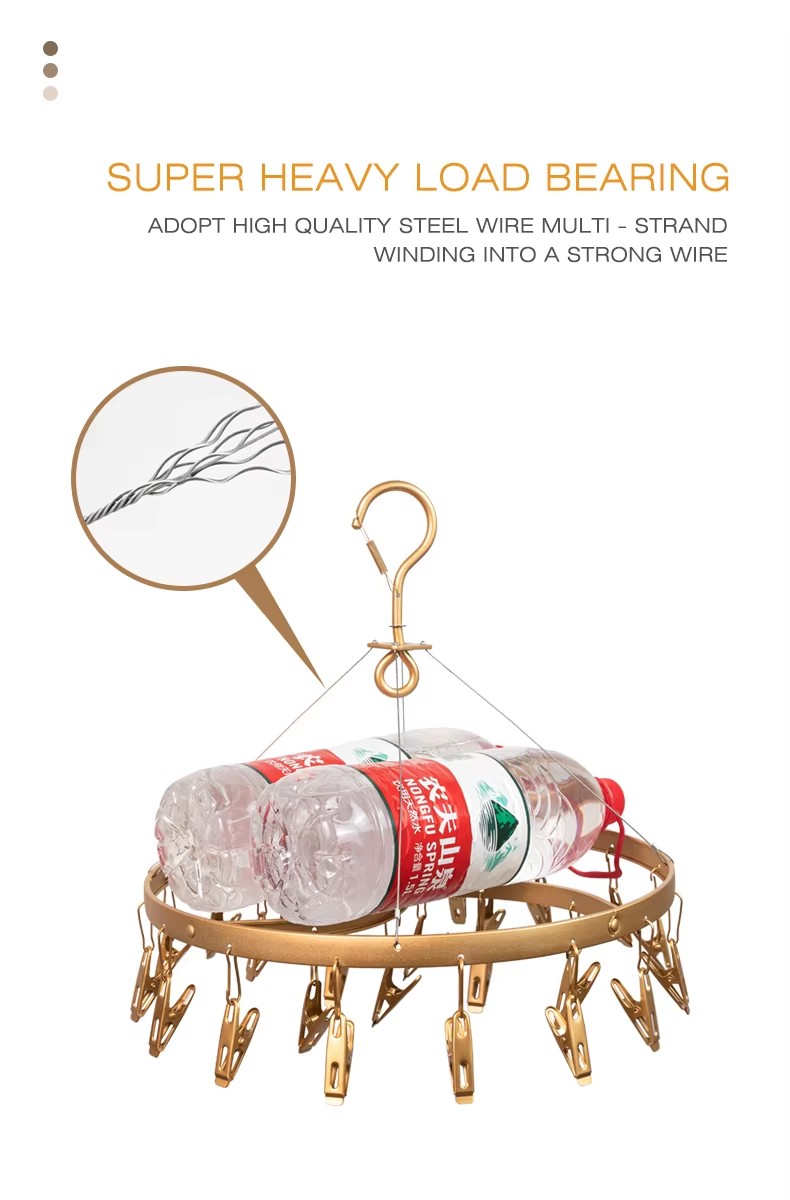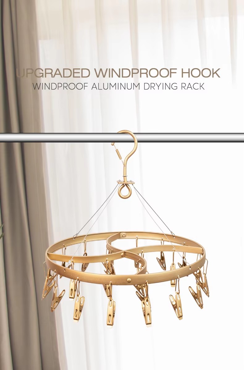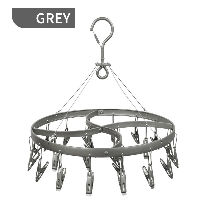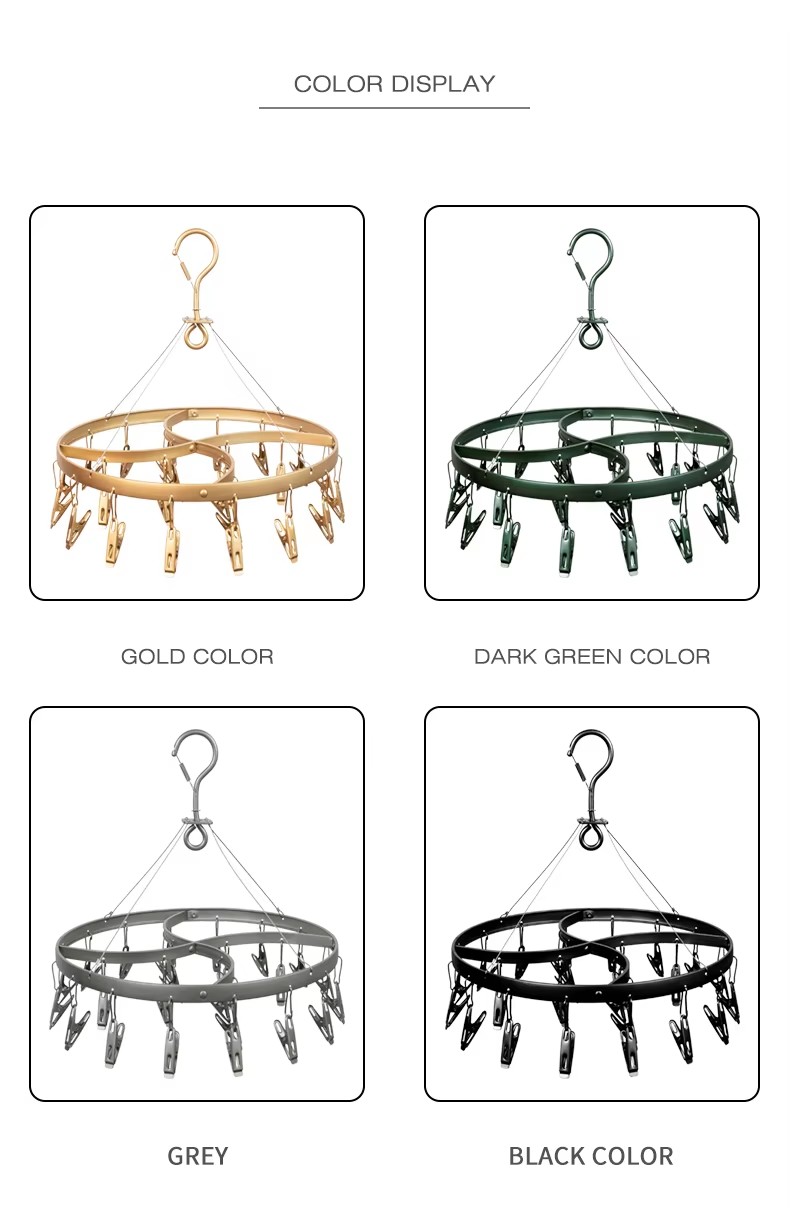 Wholesale Round Shape Black Metal Socks Hanger Clothes Drying Racks with 24 Clips Aluminum Alloy